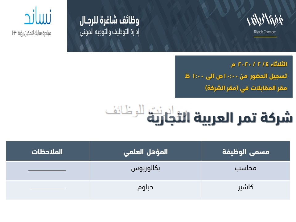 شركة تمر العربية وظيفة محاسب وكاشير في الرياض
