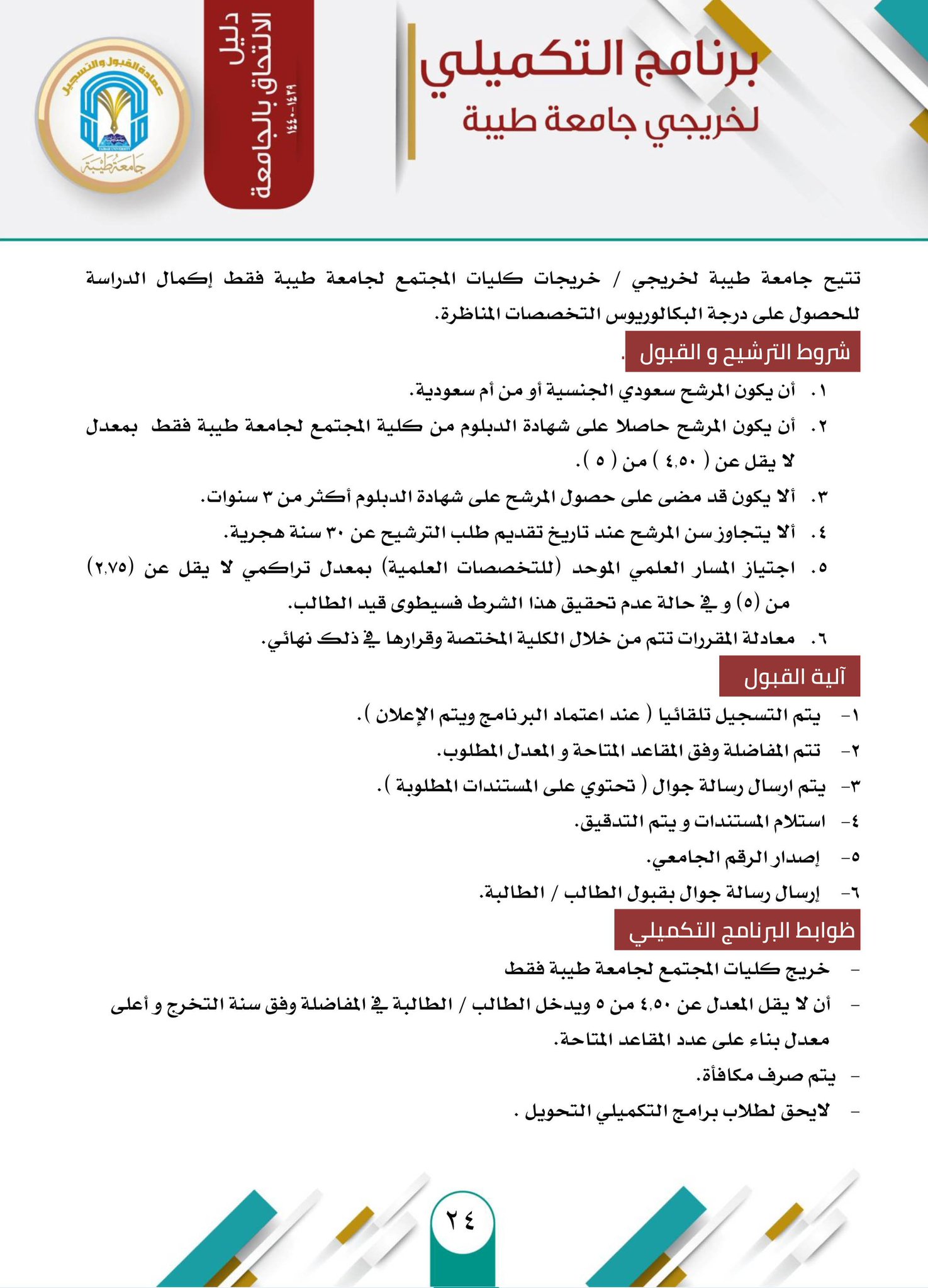 الـ قـ بـ ول و التسجيل On Twitter قبول 1439 1440 برامج الانتظام البكالوريوس كليات المجتمع دليل الالتحاق بالجامعة للعام 1439 1440هـ البرنامج التكميلي لخريجي كليات المجتمع بجامعة طيبة Https T Co Zyjbjj93vb