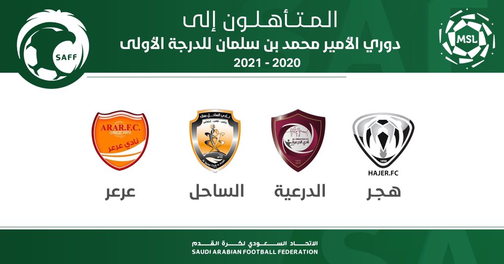 الاتحاد السعودي لكرة القدم On Twitter ألف مبروووك Ararclub1 يكمل عقد الفرق المتأهلة إلى دوري الأمير محمد بن سلمان لأندية الدرجة الأولى للمحترفين الموسم المقبل 2020 2021 Https T Co C5jrpefxu1