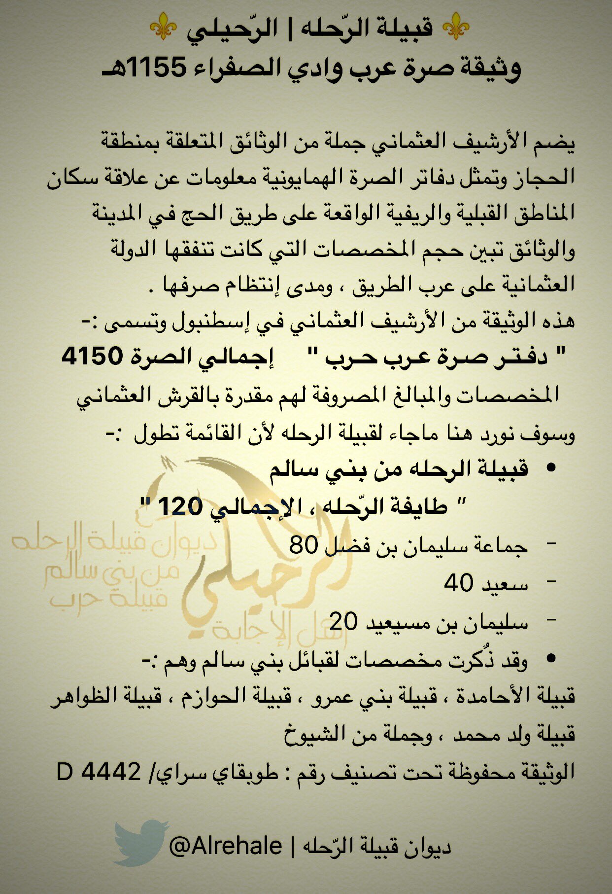 ديوان قبيلة الرحله On Twitter وثيقة صرة عرب وادي الصفراء عام 1155هجري أو ما يسمى دفتر صرة عرب حرب في عهد الدولة العثمانية قبيلة الرحله