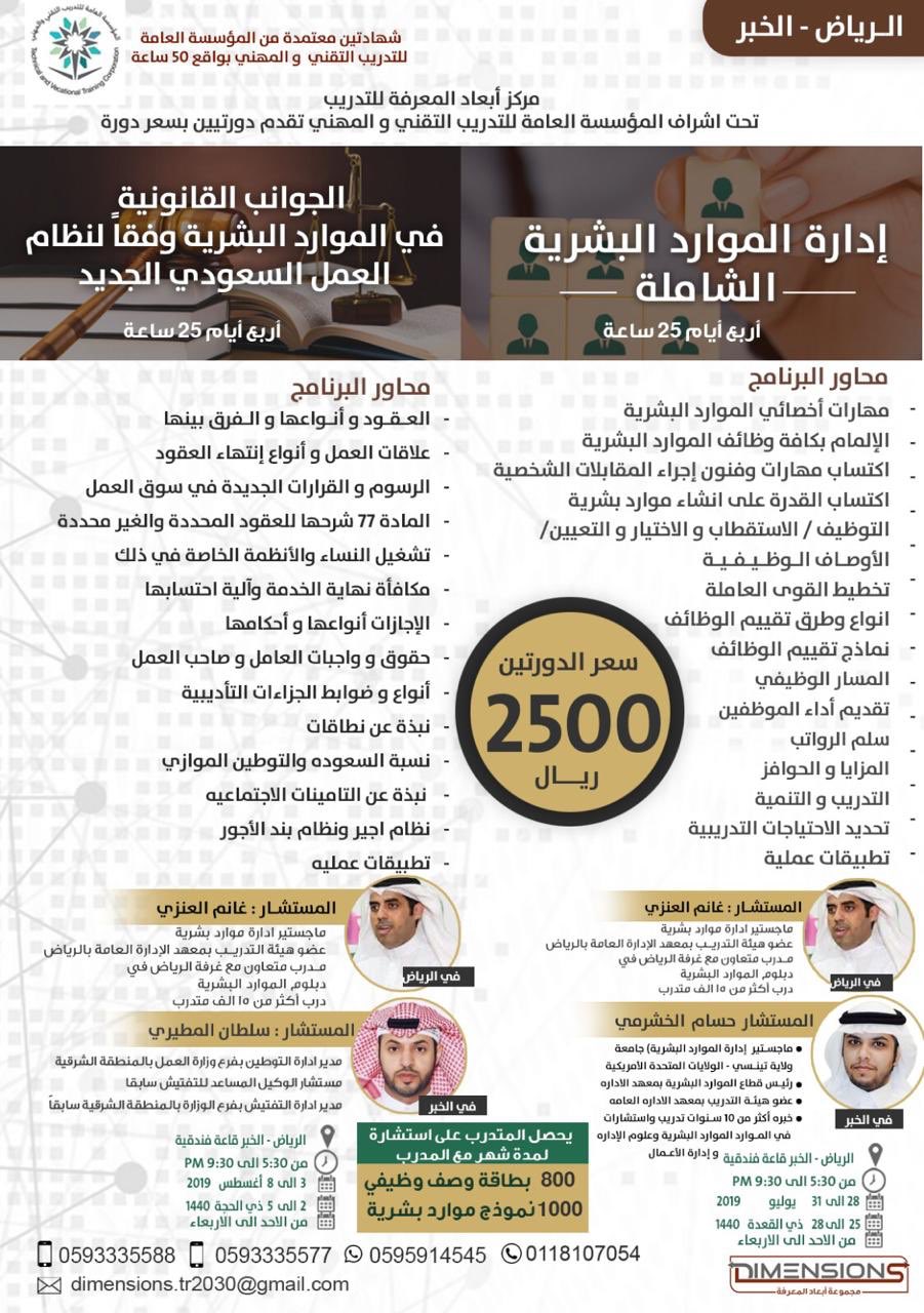 توظيف السعودية On Twitter عرض دورتين بسعر دورة واحدة إدارة الموارد البشرية الشاملة Hrs الرياض والخبر 28 يوليو 25 ذي القعدة الجوانب القانونية في الموارد البشرية الرياض والخبر 3 أغسطس