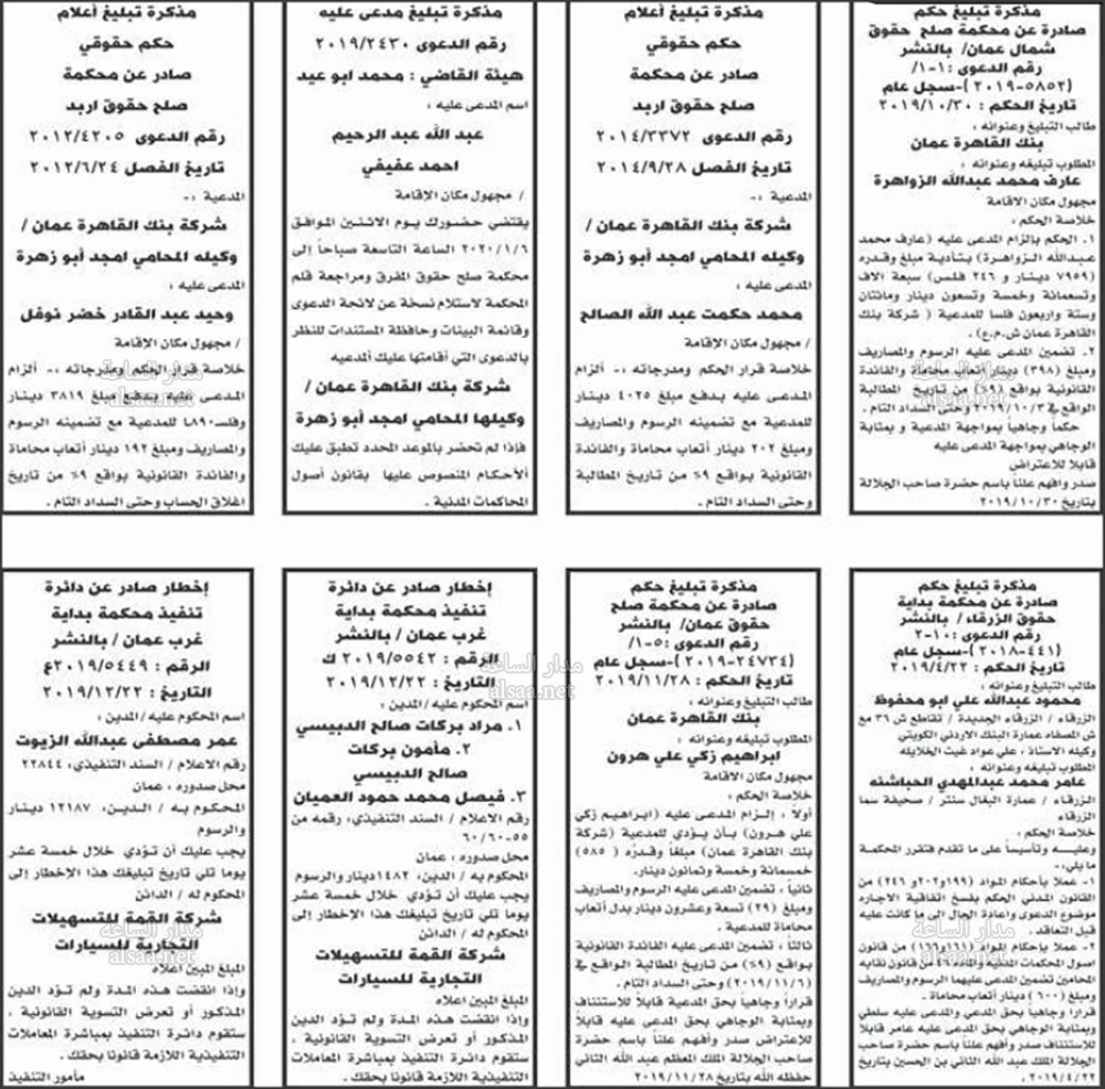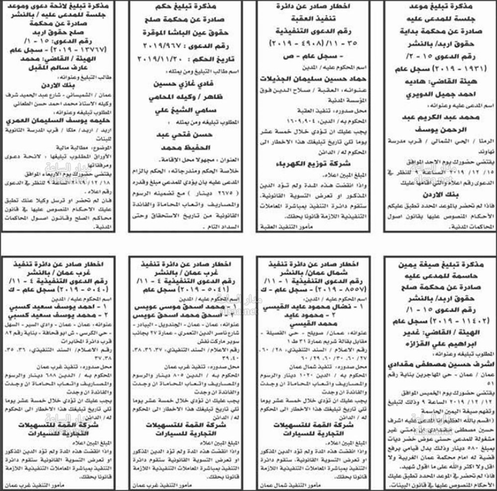 محاكم واخطارات عن دوائر التنفيذ راجعونا أسماء