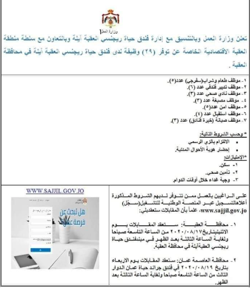 العمل تعلن عن 29 فرصة عمل بالقطاع الخاص في العقبة التاج الإخباري