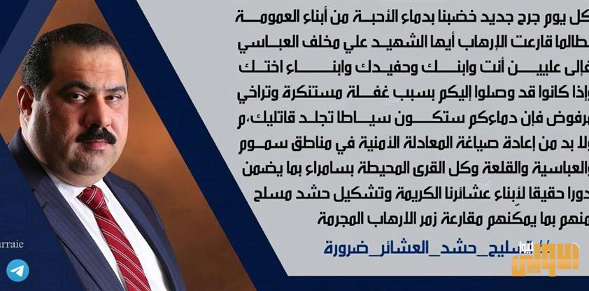 السامرائي يدعو لتشكيل حشد عشائري لمواجهة داعش في سامراء وكالة الاولى نيوز