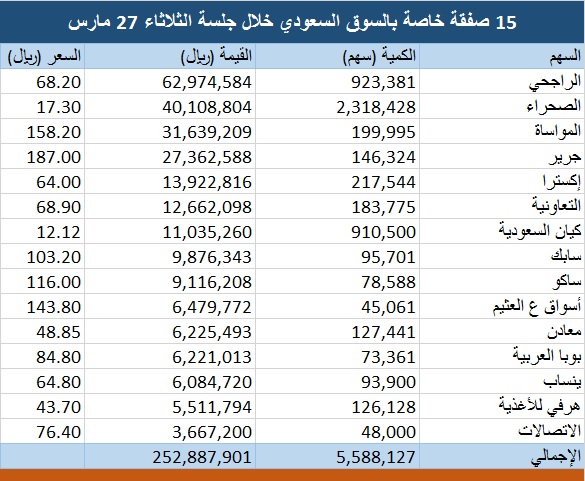 محدث 15 صفقة خاصة بالسوق السعودي أكبرها لـ الراجحي معلومات مباشر